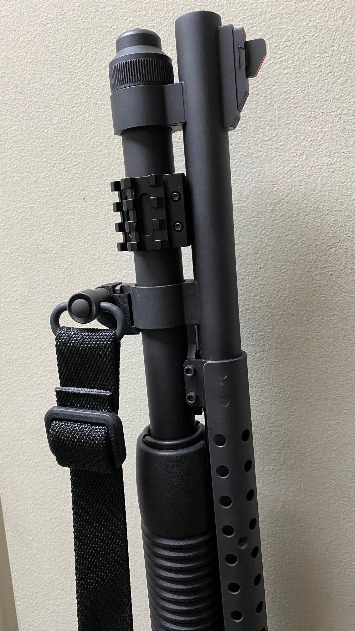This QD Adapter is made for Mossberg 590 to allow Sling Mount Kit installation sideways for QD swivels.